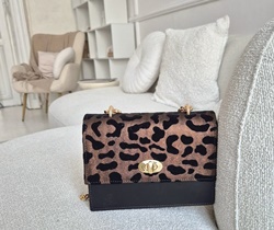 A Astraea kis méretű táska a SzaboIldi Original kollekció elegáns, praktikus darabja. Fedéllel záródik, melyen egy szép aranyszínű lánc fogó található, amelynek hosszát tetszés szerint állíthatod, így vállon, kézben, oldaltáskaként vagy crossbodyként is hordható.